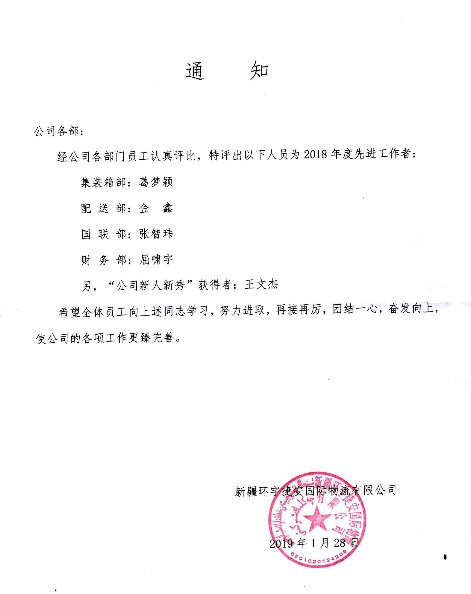 環宇捷安公司在2018年交出了一份滿意的答卷,離不開公司每位員工的辛勤耕耘。致辭結束后,公司領導對員工代表分別頒發了現金個人獎、優秀新人獎證書及獎金,以資鼓勵。